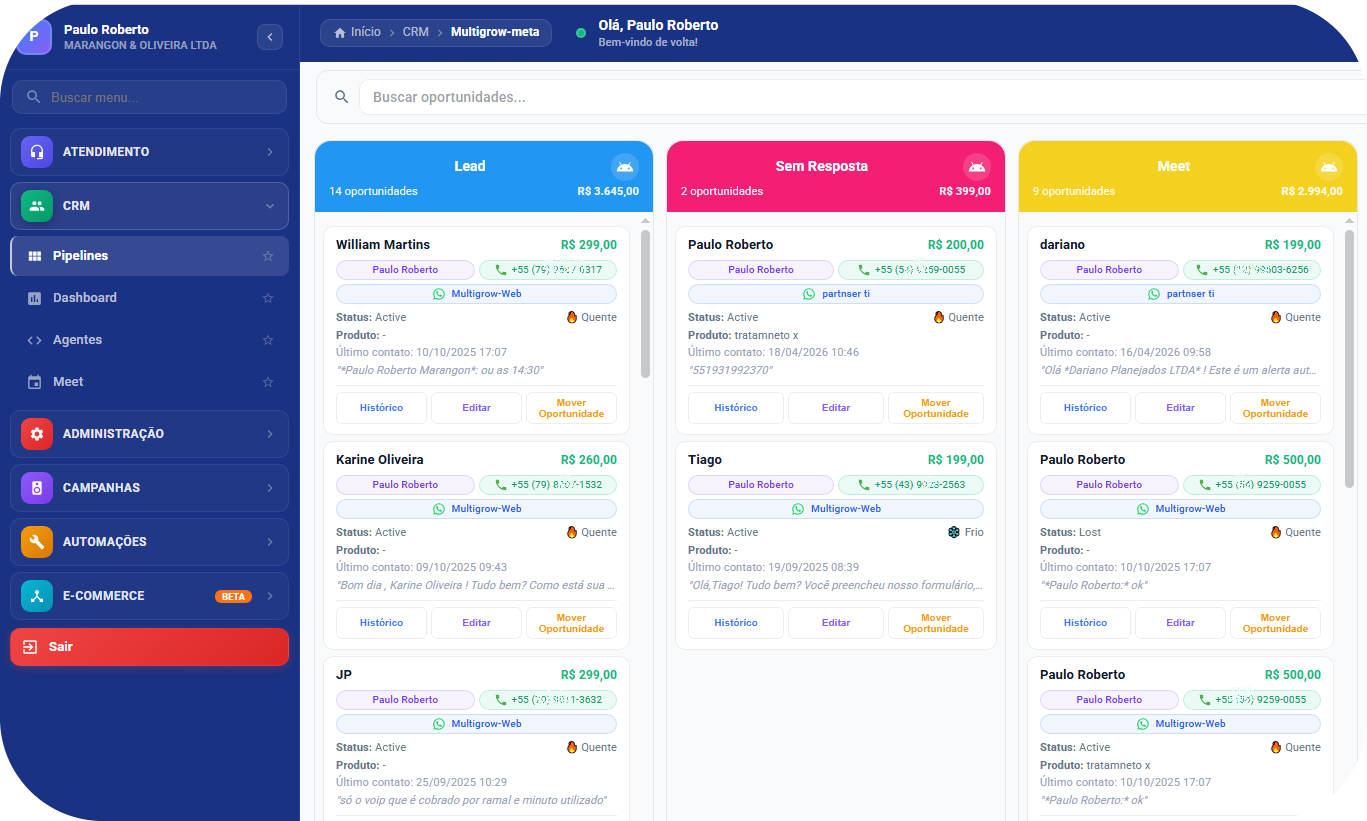 Todos os planos incluem: 1 Chat interno 1 Número de WhatsApp, 1 Instagram Direct 1 facebook Messenger,